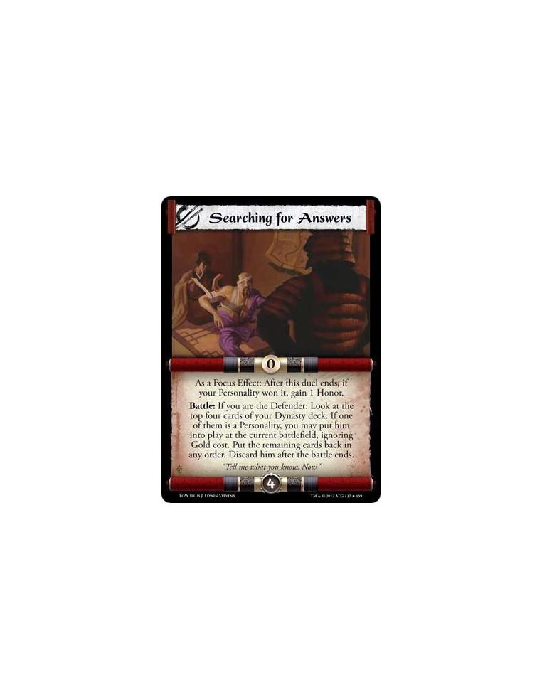 Searching for Answers  - As a Focus Effect: After this duel ends, if your Personality won it, gain 1 Honor. Battle: If you are t