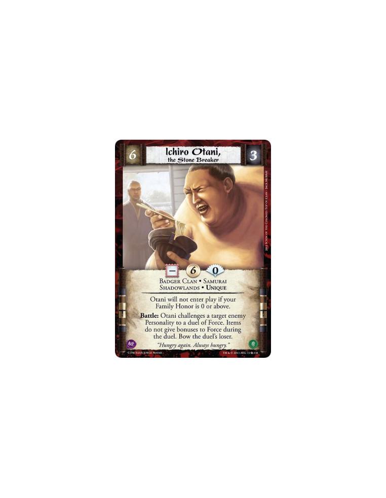 Lion Clan • Samurai • Deathseeker Reaction: After Otsuko or another Deathseeker Personality in her army is destroyed: Reduce the Force of a target Personality or Follower in the current enemy army to 0. Gain 2 Honor.