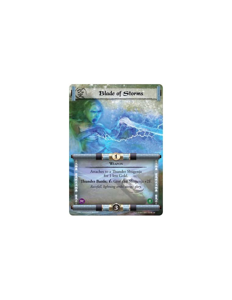 Blade of Storms FULL BLEED  - Thunder • Weapon  Attaches to a Thunder Shugenja for 1 less Gold.Thunder Battle, w: Give this Shug