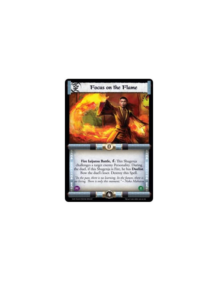 Focus on the Flame  - Fire Iaijutsu Battle, w: This Shugenja challenges a target enemy Personality. During the duel, if this Shu