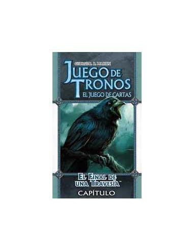 Los En tiempos de guerra, los viajes largos están plagados de peligros. Los depredadores, ya sean de dos piernas o cuatro patas, dan caza a los viajeros incautos, mientras que la naturaleza presenta sus propias amenazas. Tanto por tierra fi rme como por mar, sólo los valientes o los desesperados viajan lejos de la seguridad del hogar, y cuando llegan al final de su travesía, muchos ya no son quienes eran al partir. El Final de una Travesía es un Capítulo de 60 cartas fijas (3 copias de cada una de las 20 cartas diferentes) del ciclo Canción del Mar para Juego de Tronos: El Juego de Cartas. Contiene cartas nunca antes vistas, diseñadas para aumentar los mazos ya existentes y facilitar su personalización, añadiendo variedad al juego. Es necesario un Juego Básico de Juego de Tronos