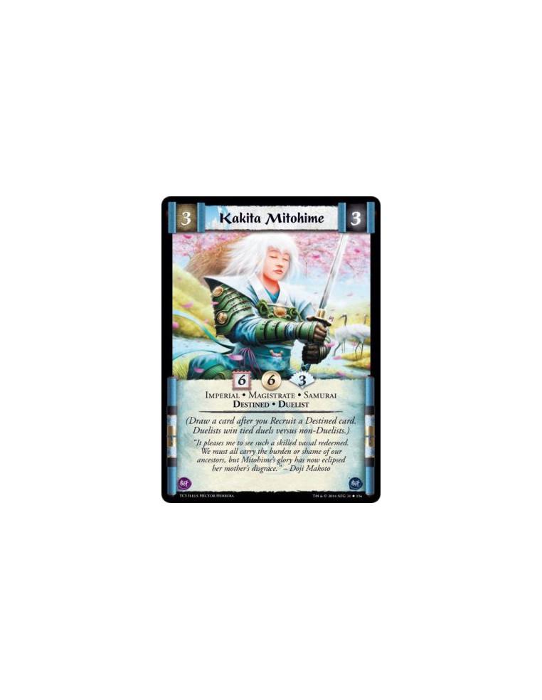 "It pleases me to see such a skilled vassal redeemed. We must all carry the burden or shame of our ancestors, but Mitohime's glory has now eclipsed her mother's disgrace." - Doji Makoto