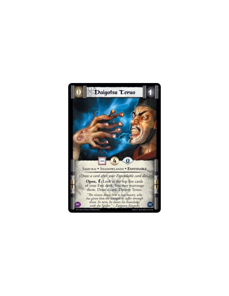 Daigotsu Teruo  - Samurai • Shadowlands • Expendable(Draw a card after your Expendable card dies.)Open, w: Look at the top five
