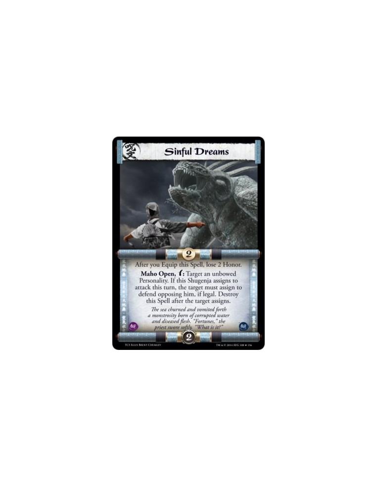 Sinful Dreams  - Maho                After you Equip this Spell, lose 2 Honor.Maho Open, w: Target an unbowed Personality. If th
