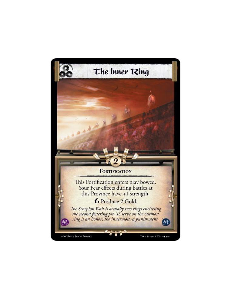 The Inner Ring  - FortificationThis Fortification enters play bowed. Your Fear effects during battles at this Province have +1 s