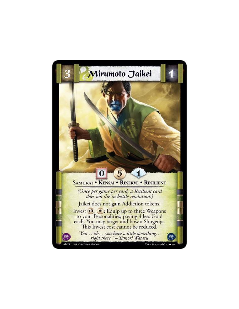 Mirumoto Jaikei  - Kensai • Reserve • Resilient • Samurai(Once per game per card, a Resilient card does not die in battle resolu