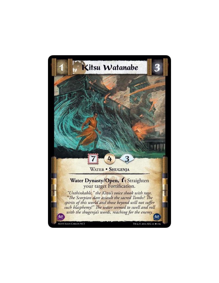 Dragon Clan • Samurai • Duelist • Kensai • Experienced • Unique • Master of the Blade • Favored of the Water DragonBattle/Open: Even if Houken is bowed: Straighten his unit. You may move him home, or, if he would be opposed, to the current battlefield.