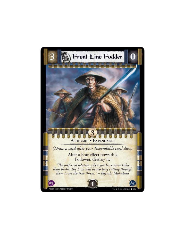 Front Line Fodder  - Ashigaru • Expendable(Draw a card after your Expendable card dies.)After a Fear effect bows this Follower,