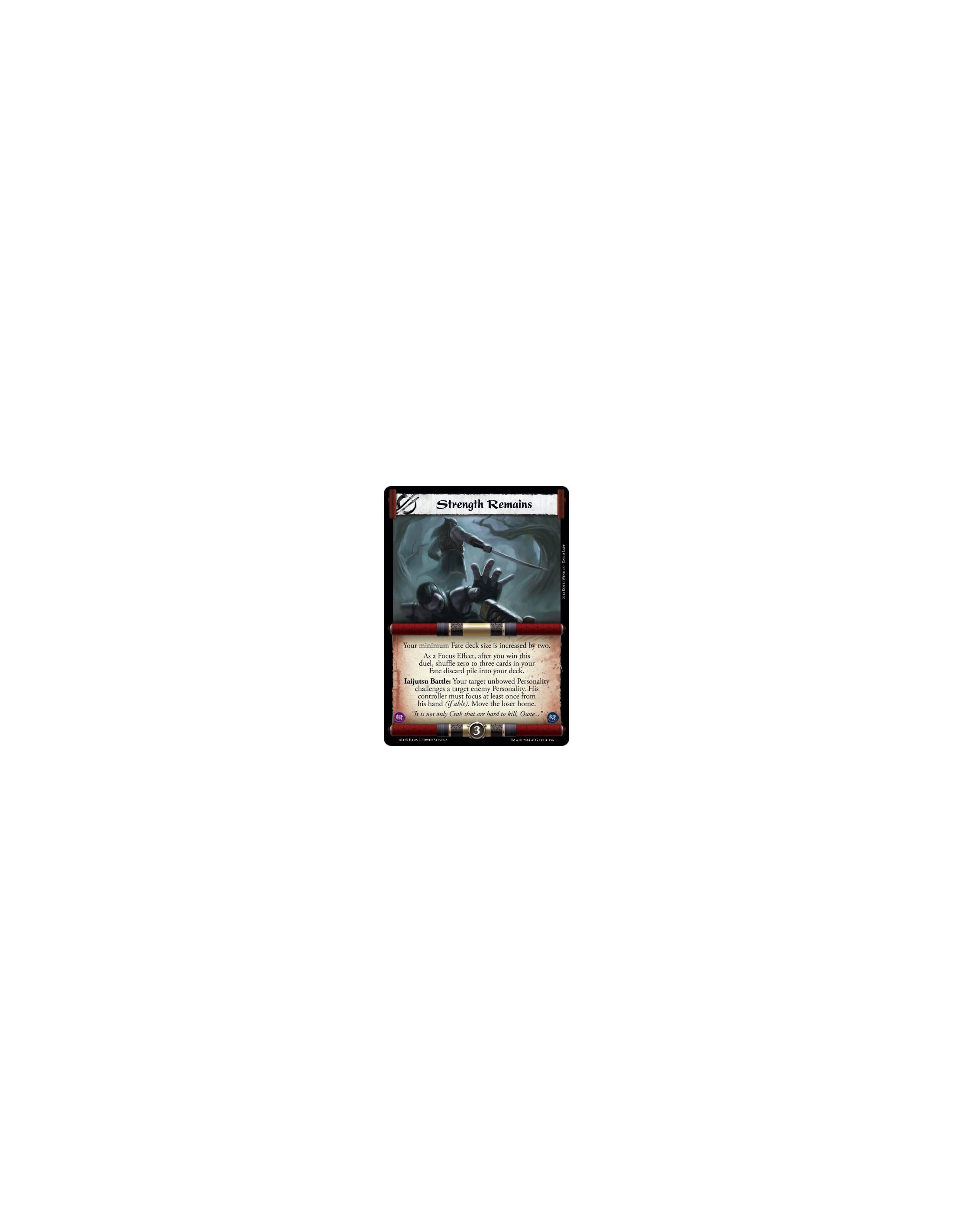 Strength Remains  - Your minimum Fate deck size is increased by two.As a Focus Effect, after you win this duel, shuffle zero to