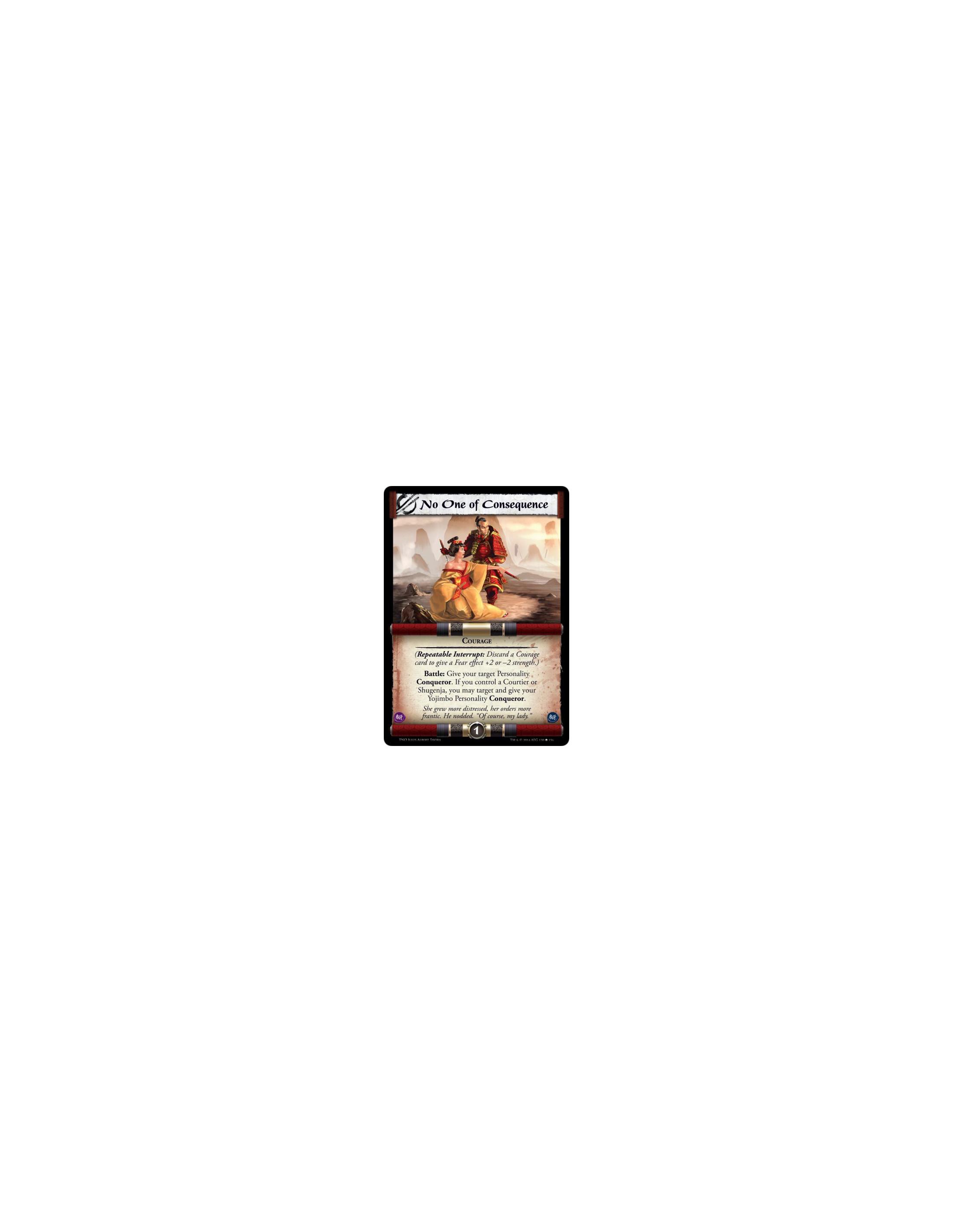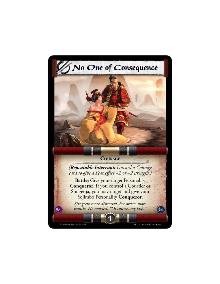 Courtier • Love Letter • OratorCourtesy: After you Recruit Takato, gain 1 Honor. (Courtesy traits do not take effect if you went first.)Interrupt: After you Recruit Takato, discard a card to make a target player discard a random card. Each of you may put the other's card in your hand.