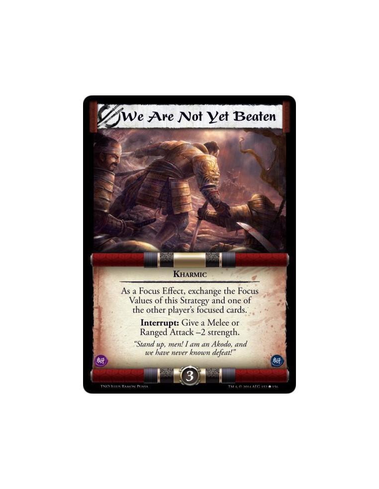 Commander • Experienced 2 • Fallen • Lion Clan • Samurai • UniqueAfter Tsudoken enters play, lose 3 Honor.Tireless Battle/Open: Straighten your target Lion Clan or Fallen Personality. (You may use Tireless abilities even if bowed.)