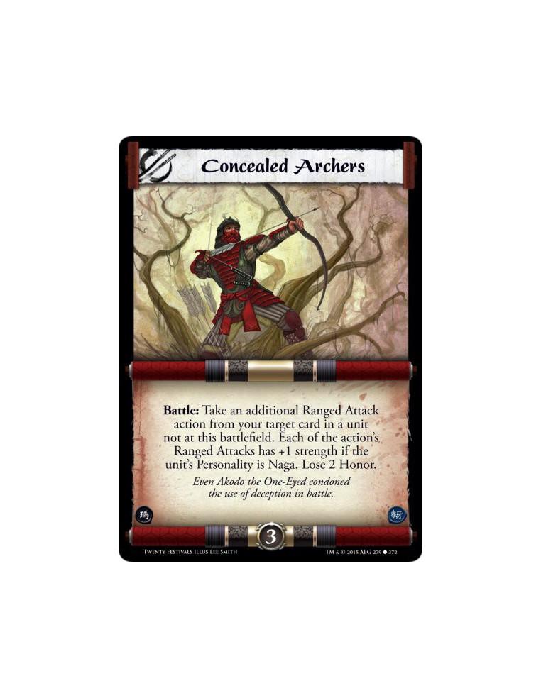 Unaligned Samurai*Toturi's Army*Experienced*Unique Battle: Once per turn, Saigorei makes a ranged attack with a strength equal to his Force that targets an opposing Cavalry card. This does not bow Saigorei.