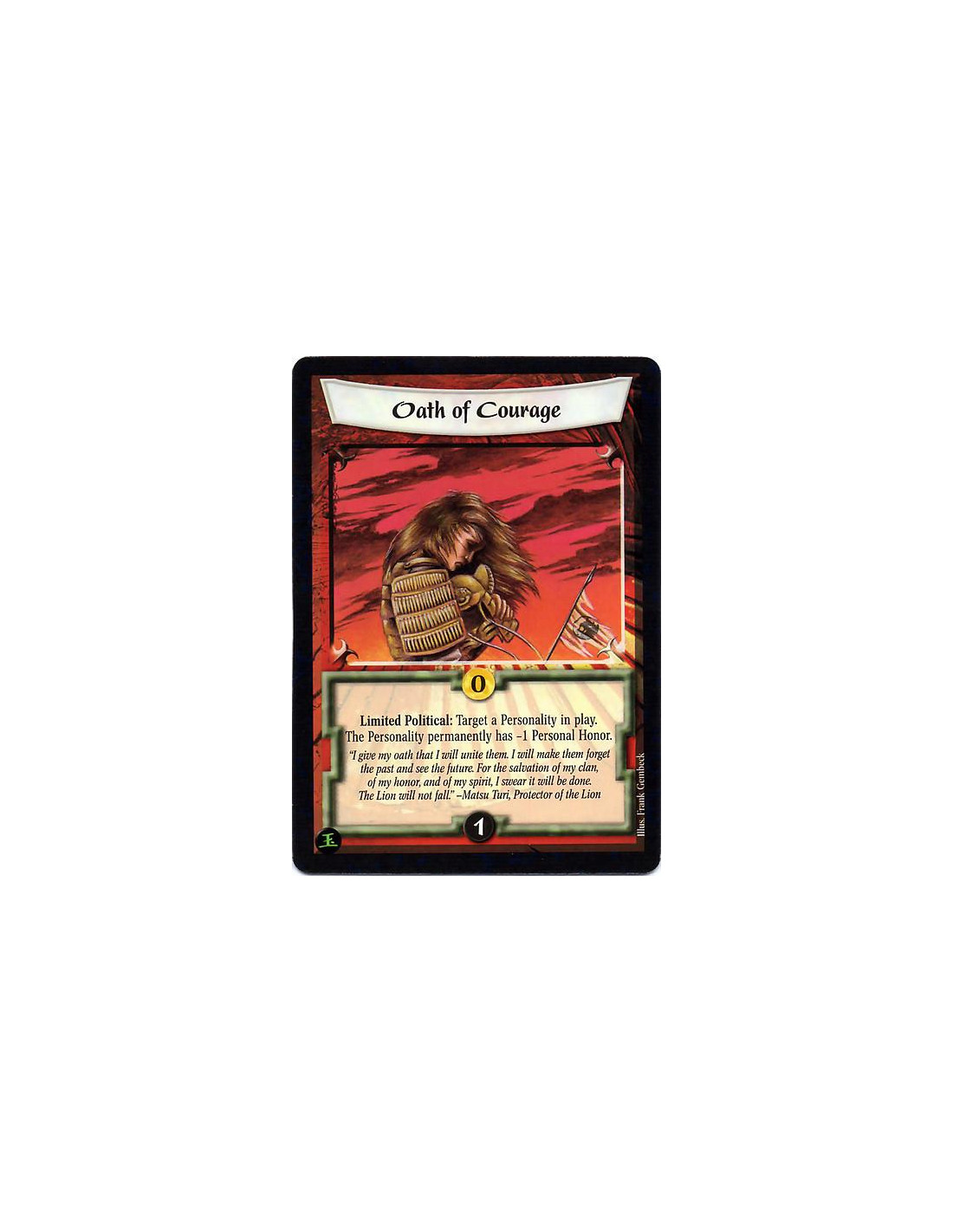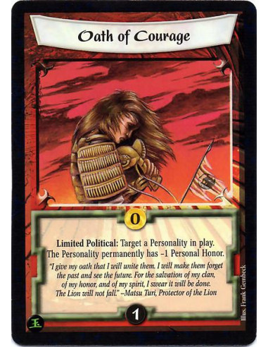 Oath of Courage  - Limited Political: Target a Personality in play. The Personality permanently has -1 Personal Honour.
