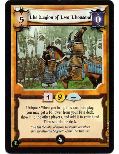 The Legion of Two Thousand  - Unique. After this card enters play, you may search your Fate deck for a Follower, show it, and pu