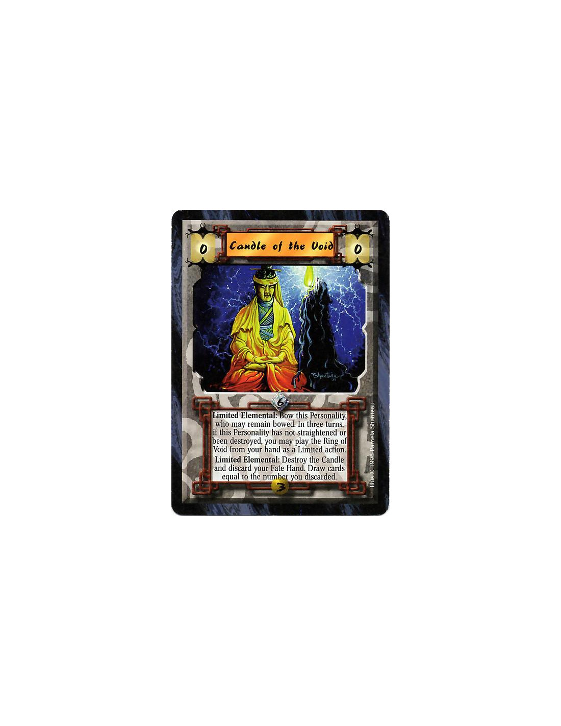 Limited Elemental: Bow this Personality who may remain bowed. In three turns, if this Personality has not straightened or been destroyed, you may play the Ring of the Void from your hand as a Limited Action. Limited Elemental: Destroy the Candle and discard your Fate Hand. Draw cards equal to the number you discarded.