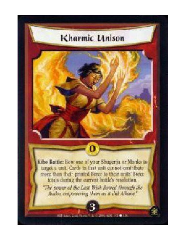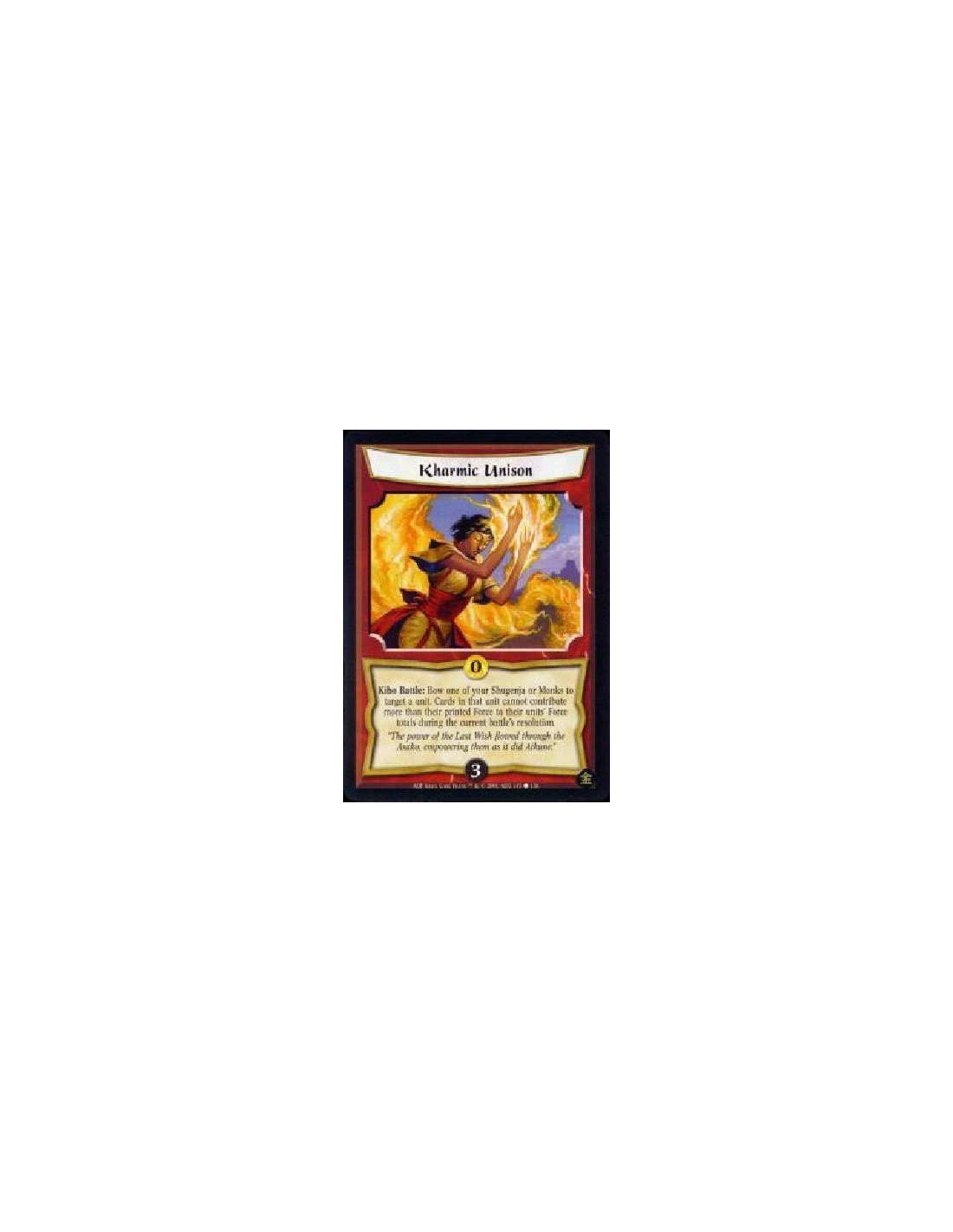 Kharmic Unison  - Kiho Battle: Bow one of your Shugenja or Monks to target a unit. Cards in that unit cannot contribute more tha