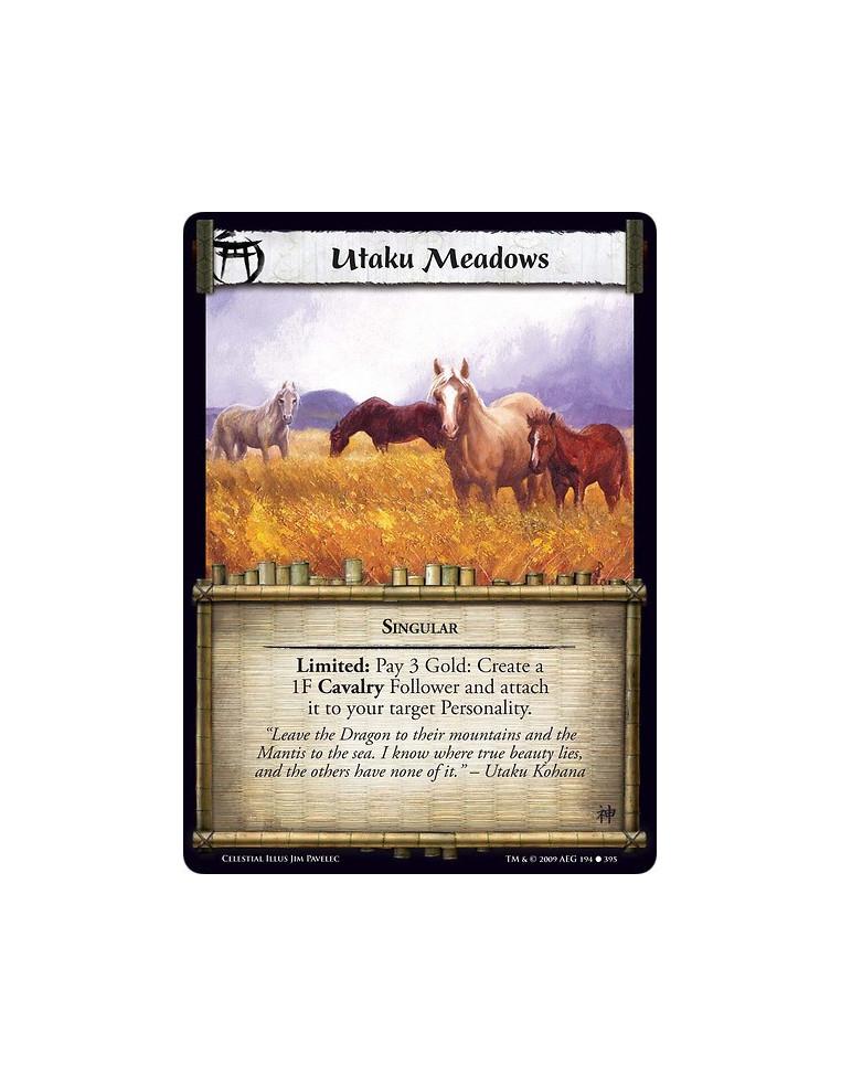 Utaku Meadows (Spanish)  - Singular Limited: Pay 3 Gold: Create a 1F CavalryFollower and attach to your target Personality.