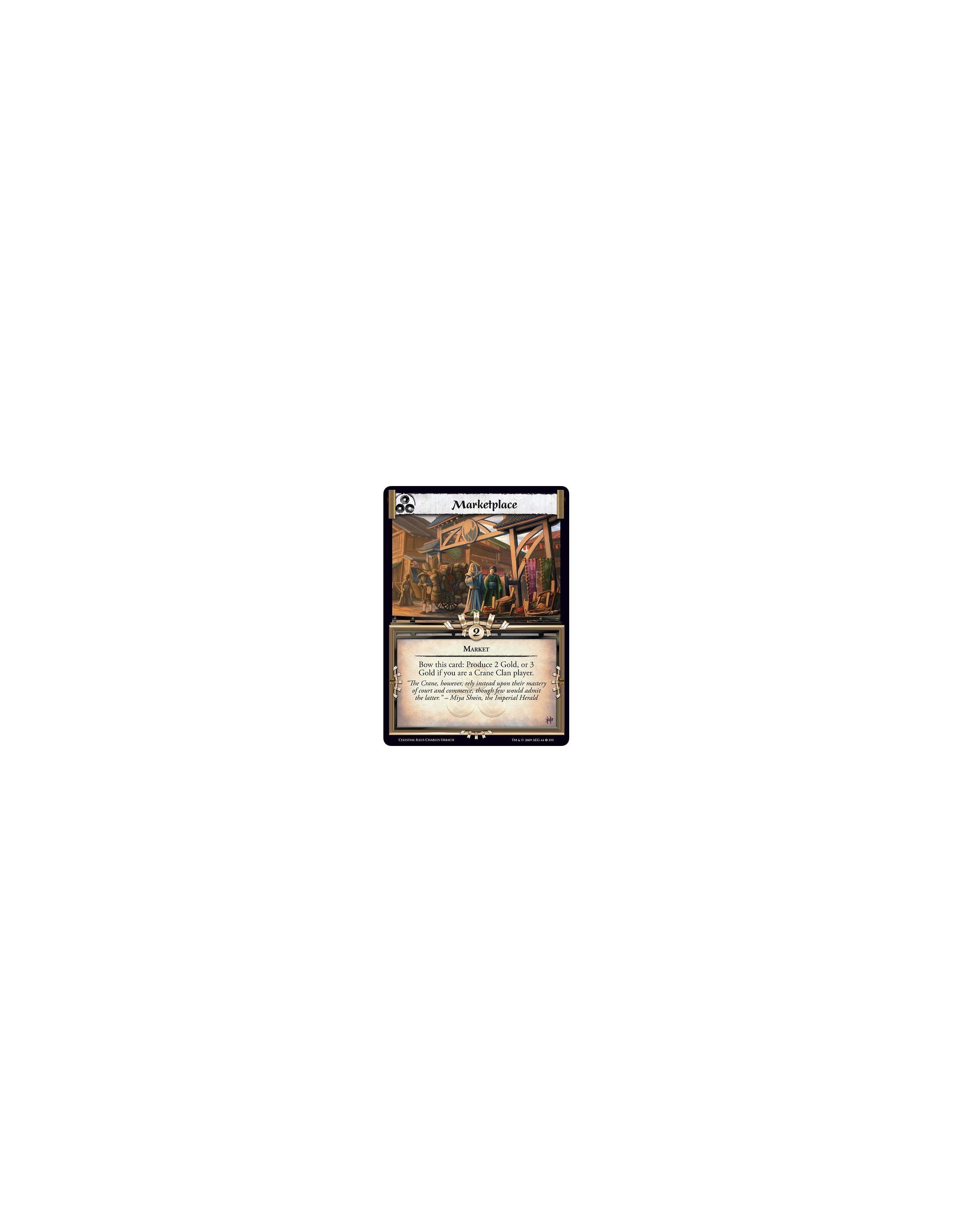 Marketplace (Spanish)  - Market Bow this card: Produce 2 Gold, or 3 Gold if you are a Crane Clan player
