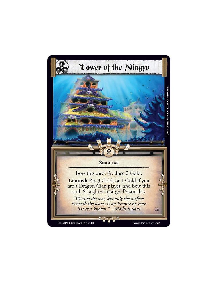 Tower of the Ningyo (Spanish)  - Singular Bow this card: Produce 2 Gold. Limited: Pay 3 Gold, or 1 Gold if you are a Dragon Clan