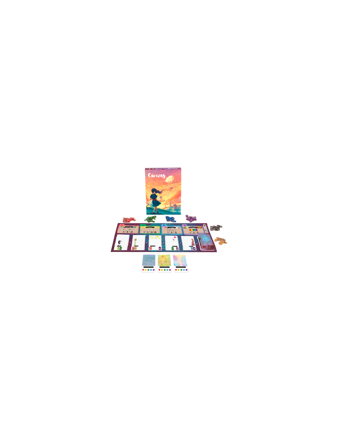 In Canvas, you are a painter competing in a prestigious art festival. Gather transparent cards to stack them in layers and paint pictures. Depending on which cards you choose and the order in which you stack them, you will reveal or cover various icons to obtain ribbons. Each combination of cards creates a unique illustration and title for your painting.