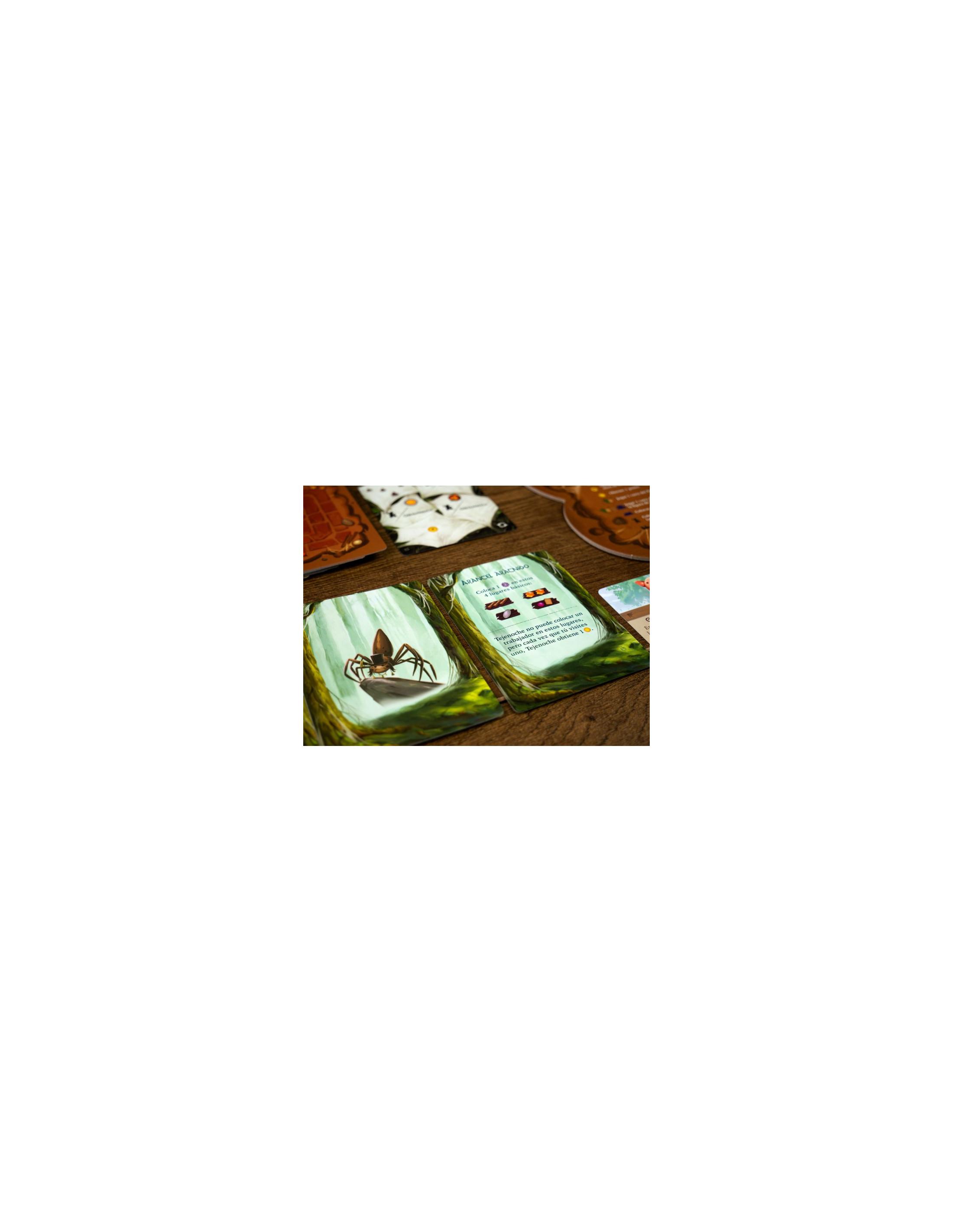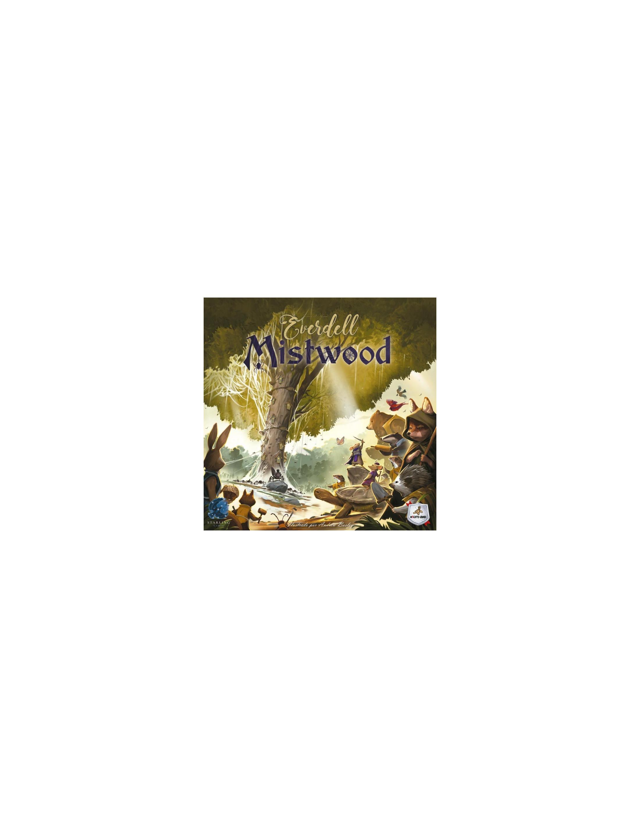 Entre las ramas más profundas y retorcidas de Bosquebrumas, yacen ocultos numerosos secretos. Los monjes de Bosquebrumas han registrado las leyendas de los héroes del pasado y del presente, incluidos los relatos del fundador de Everdell, Corrin Evertail, y otras figuras míticas de la historia del Valle Esmeralda. A lo largo de cada estación, los monjes ayudan a vigilar y guiar a los hermosos habitantes del valle. Pero en las entrañas del bosque, una misteriosa amenaza ha estado aguardando pacientemente, elaborando planes y siniestras conspiraciones… ¿Conseguirá sobrevivir el hermoso valle a la proliferación de telarañas de la astuta araña Tejenoche y su prole de arácnidos?