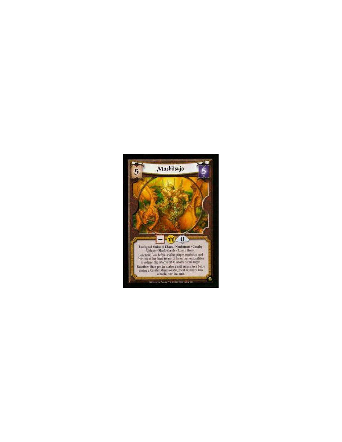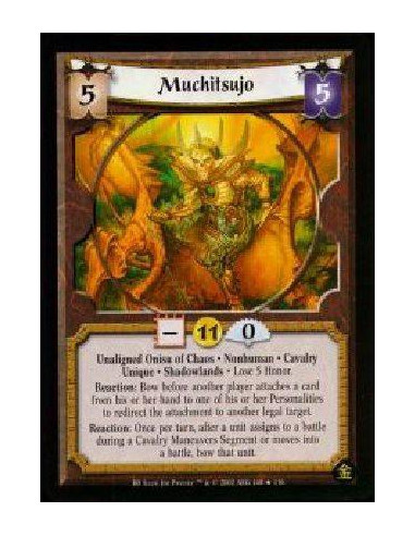 Muchitsujo  - Unaligned Onisu of Chaos. Nonhuman. Cavalry. Unique. Shadowlands Lose 5 Honor. Reaction: Bow before another player