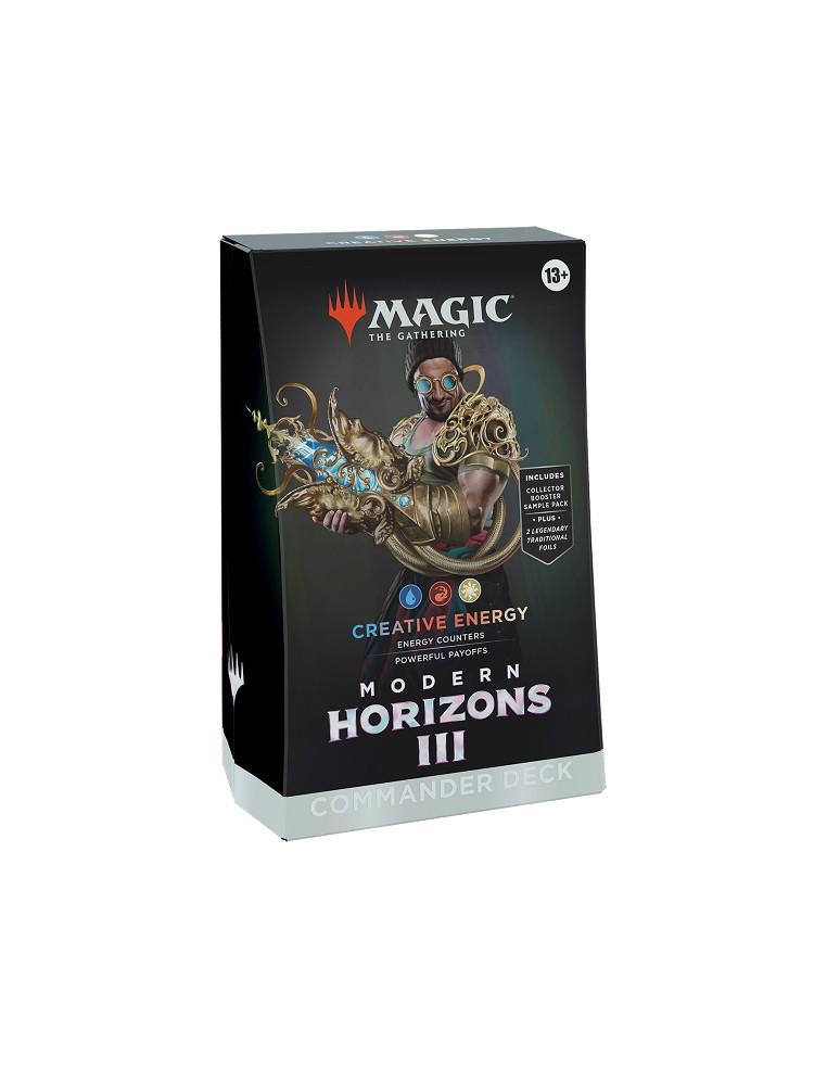MODERN HORIZONS 3 BARAJA COMMANDER GRAVEYARD OVERDRIVE. Caja de cartón con 1 carta Commander, 98 normales, 2 foil. 10 tokens a doble cara y un sobre de coleccionista de muestra.