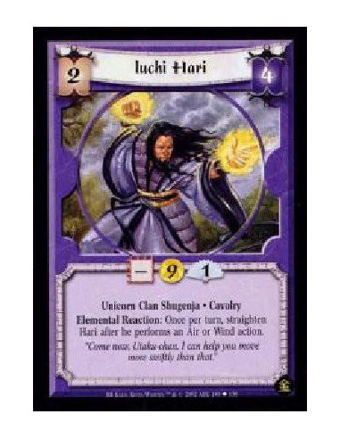 Kiho Battle : Target one of your unbowed Shugenja or Monks: Attach a target discarded Item or Follower you own to one of your target Personalities, reducing its Gold Cost by the Personality's Force until it attaches.