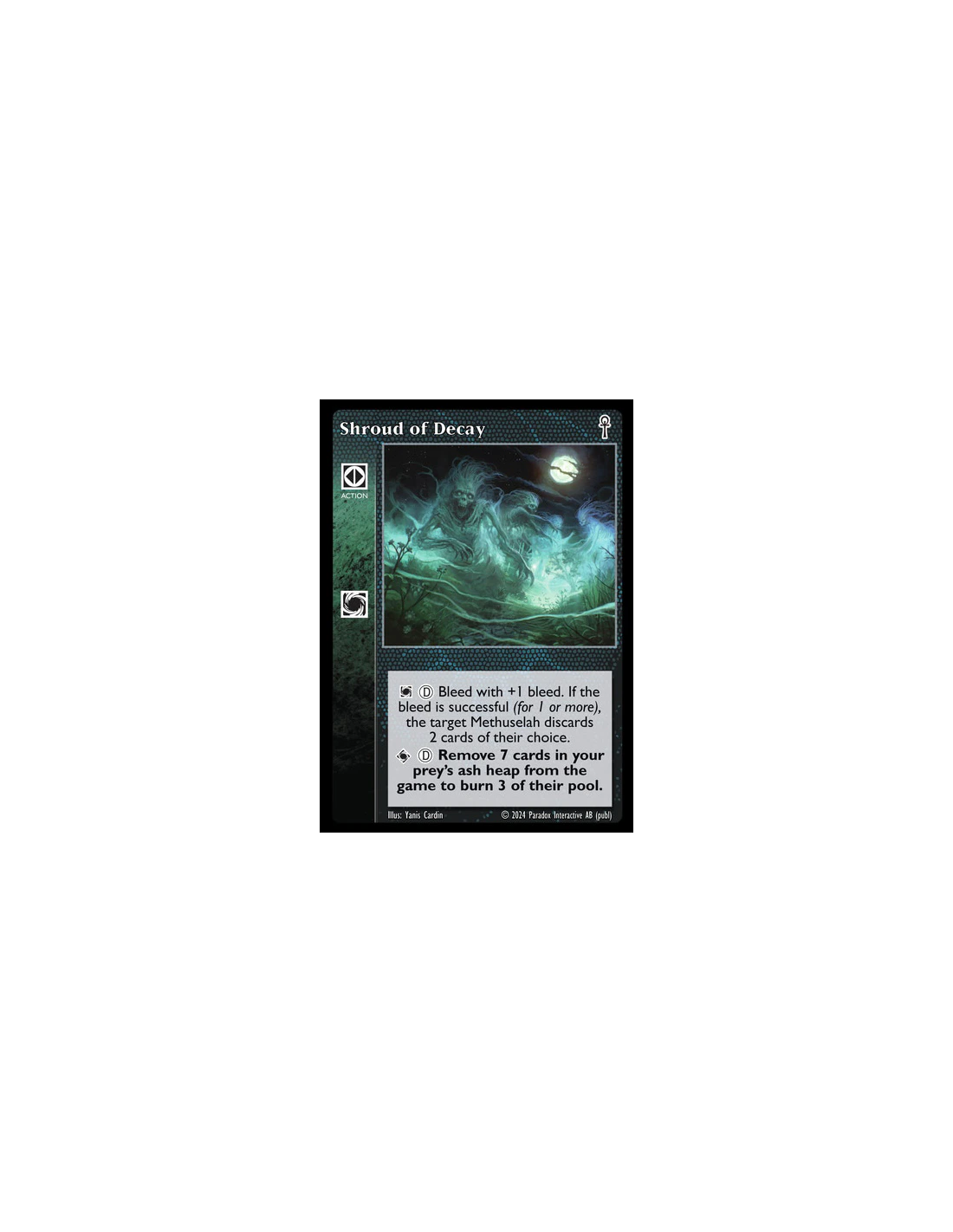 This deck is about entropy and decay. Your vampires use the entropic powers of Oblivion to torment their rivals and summon and command the very spirits of the deceased. They steer their fate with the powers of Auspex, reading auras and through divination. And they exalt the physical durability of the undead form with their powers of Fortitude.