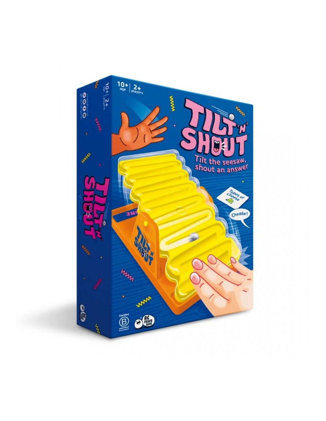 Tilt N Shout es un juego de mesa con el que te sentirás como un concursante del mítico “Un, dos, tres” o del “30 Segundos” o de cualquier concurso de la tele. Elige una categoría y da una respuesta lo más rápido posible ¡De tu capacidad de acierto y velocidad de respuesta depende tu victoria!