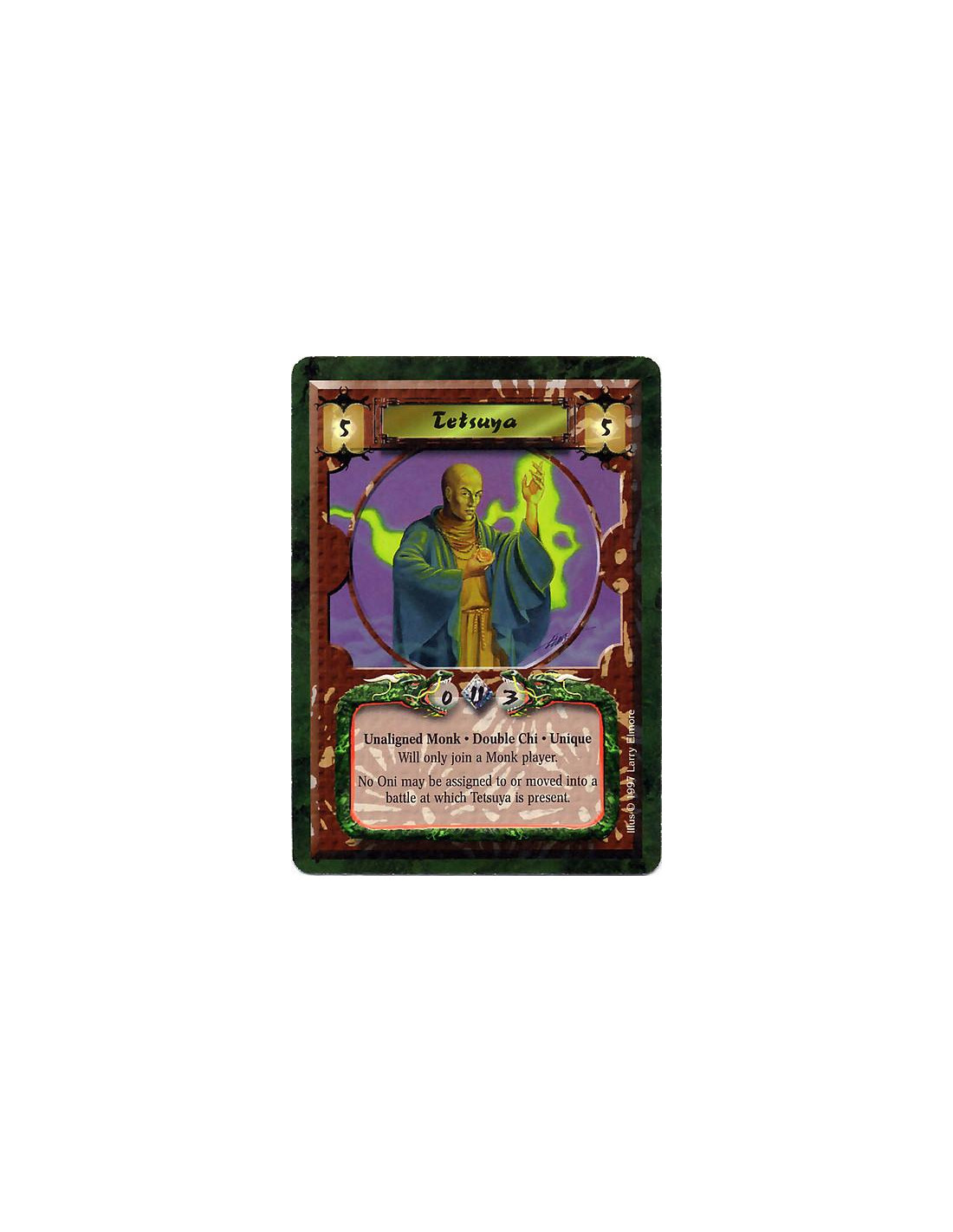 Unaligned Monk. Double Chi. Unique Will only join a Monk player. No Oni may be assigned to or moved into a battle at which Tetsuya is present.