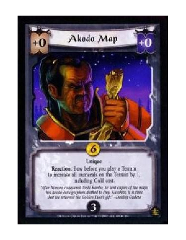 Akodo Map  - Unique Reaction: Bow before you play a Terrain to increase all numerals on the Terrain by 1, including Gold cost.