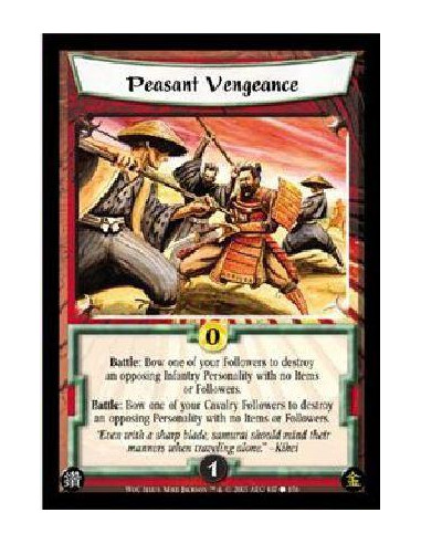 Peasant Vengeance  - Battle: Bow one of your Followers to destroy an opposing Infantry Personality with no Followers or Items. B