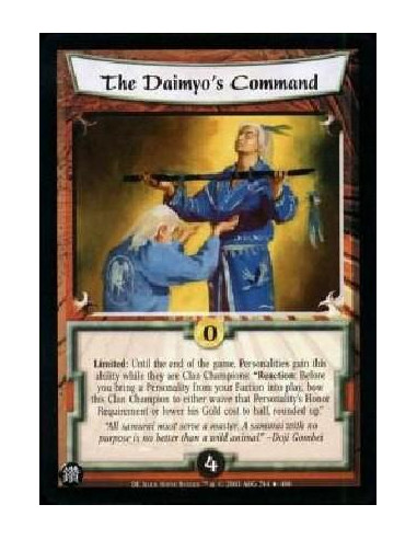 Courtier • Destined • Merchant Invest , or if another player is Dragon Clan: Permanently give your target Holding the ability, "Economic Open, w: A target player loses 1 Honor."