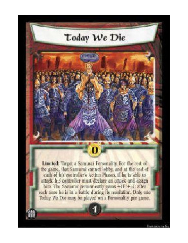 Battle: Target an opposed Crab Clan Personality: Give him +4F. Until the end of the battle, enemy players must discard 2 cards as additional cost to target this Personality.
