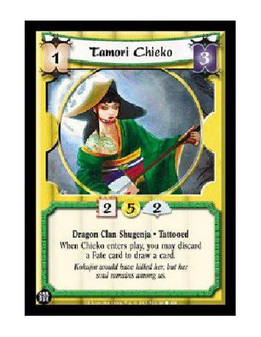 Tamori Chieko  - Dragon Clan Shugenja * Tattooed When Chieko enters play, you may discard a Fate card to draw a card.