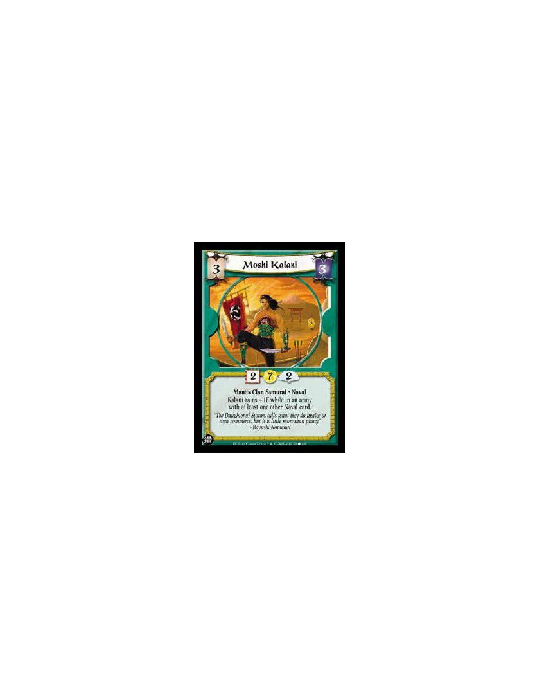 Moshi Kalani  - Mantis Clan Samurai * Naval Kalani gains +1F while in an army with at least one other Naval card.
