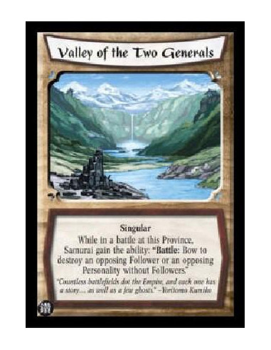 Valley of the Two Generals  - Singular While in a battle at this Province, Samurai gain the ability: "Battle: Bow to destroy an
