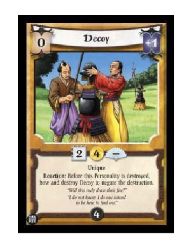 Scorpion Clan Student of Bitter Lies · Samurai · Ninja. After each time you play an Action card, Shusui gains +1F/+1C. Battle: Pay 3 Gold: If you are a Scorpion Clan player, once per turn, draw 3 cards. Destroy Shusui when this Battle Action Segment ends.