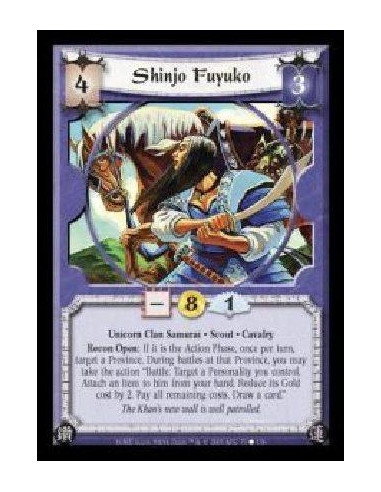 Shinjo Fuyuko  - Unicorn Clan Samurai · Scout · Cavalry. Recon Open: If it is the Action Phase, once per turn, target a Province