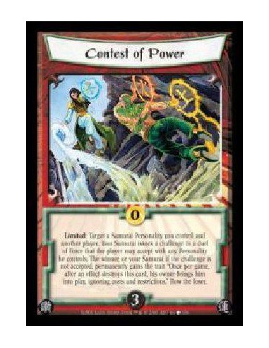 Contest of Power (Spanish)  - Limited: Target a Samurai Personality you control and another player. Your Samurai issues a challe