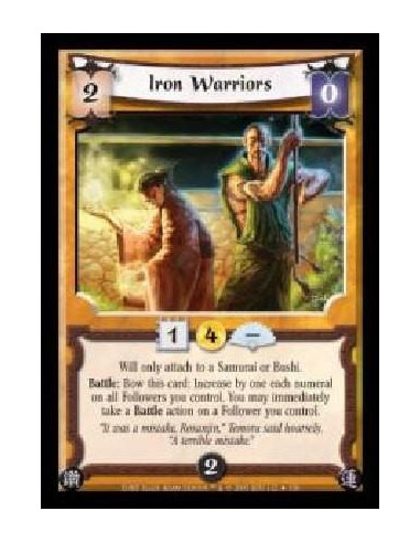 Iron Warriors FOIL  - Hill only attach to a Samurai or Bushi. Battle: Bow this card: Increase by one each numeral on all Followe