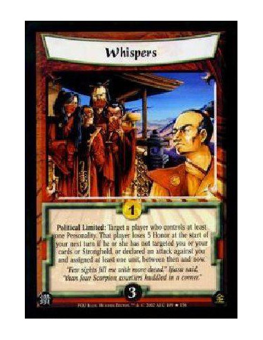 Whispers FOIL  - Political Limited: Target a player who controls at least one Personality. That player loses 5 Honor at the star