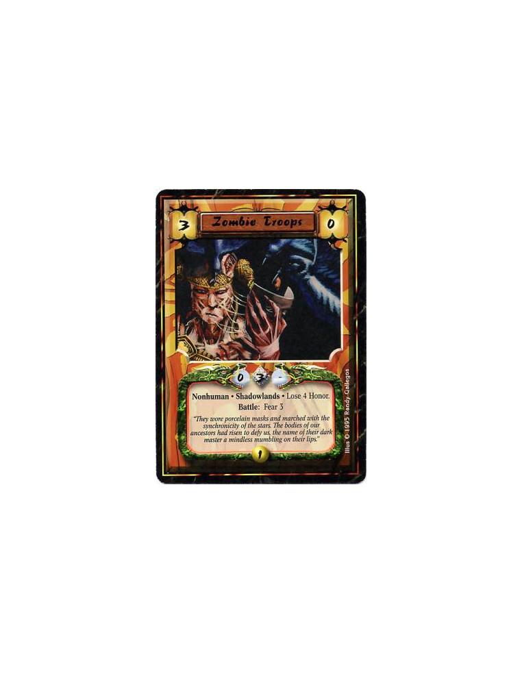 Unaligned Nonhuman Samurai. Shadowlands. Experienced. Unique Lose 6 Honor. Will not enter play if you have a family honor above zero. Cannot be assigned to the same army as units that have no Shadowlands cards and vice versa. Battle: Fear 3.