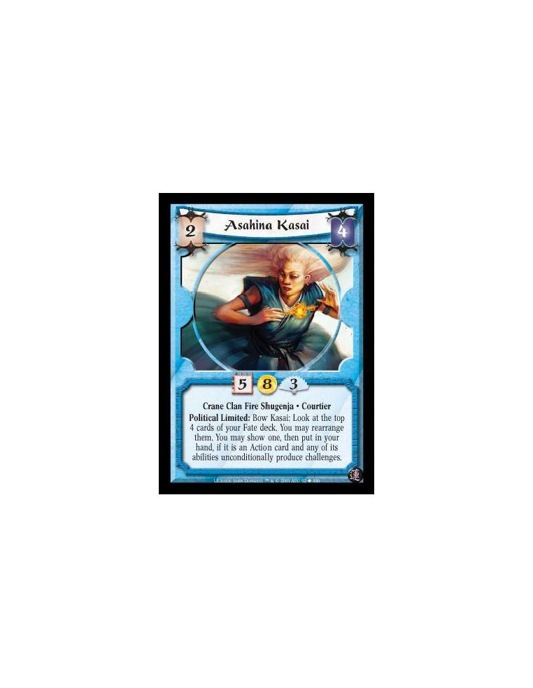 Asahina Kasai  - Crane Clan Fire Shugenja · Courtier. Political Limited: Bow Kasai: Look at the top 4 cards of your Fate deck. Y