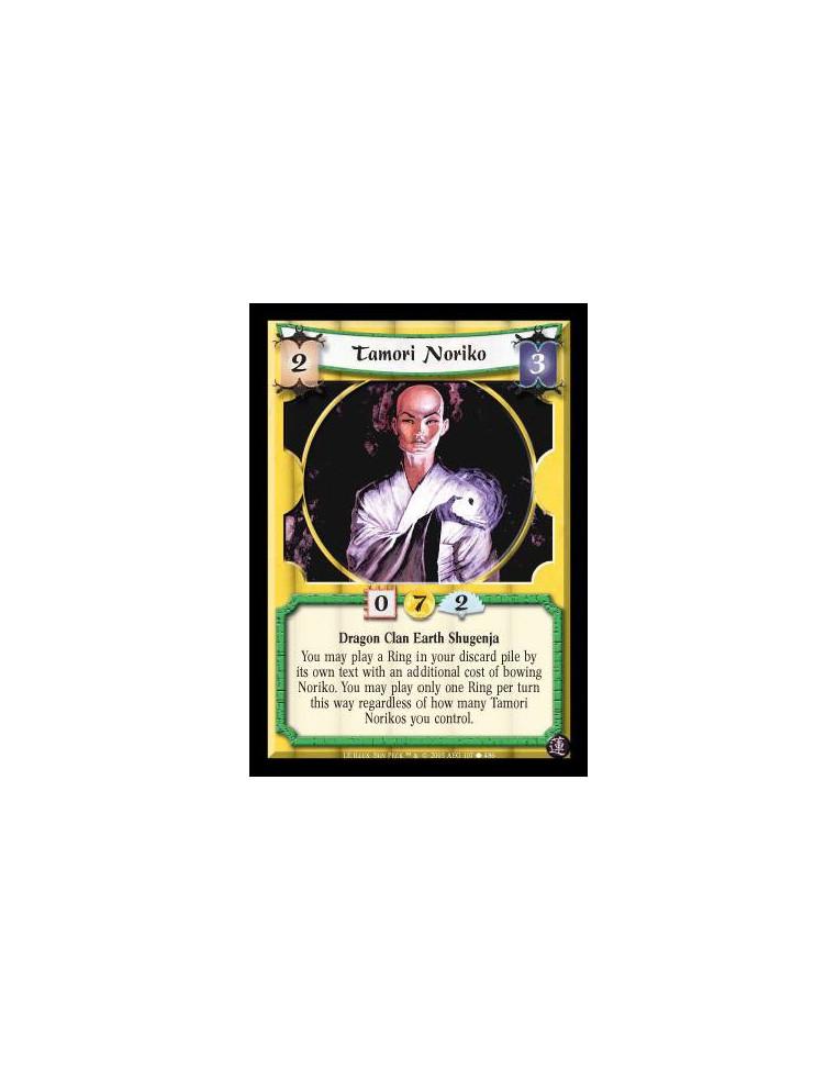 Dragon Clan Earth Shugenja. You may play a Ring in your discard pile by its own text with an additional cost of bowing Noriko. You may play only one Ring per turn this way regardless of how many Norikos you control