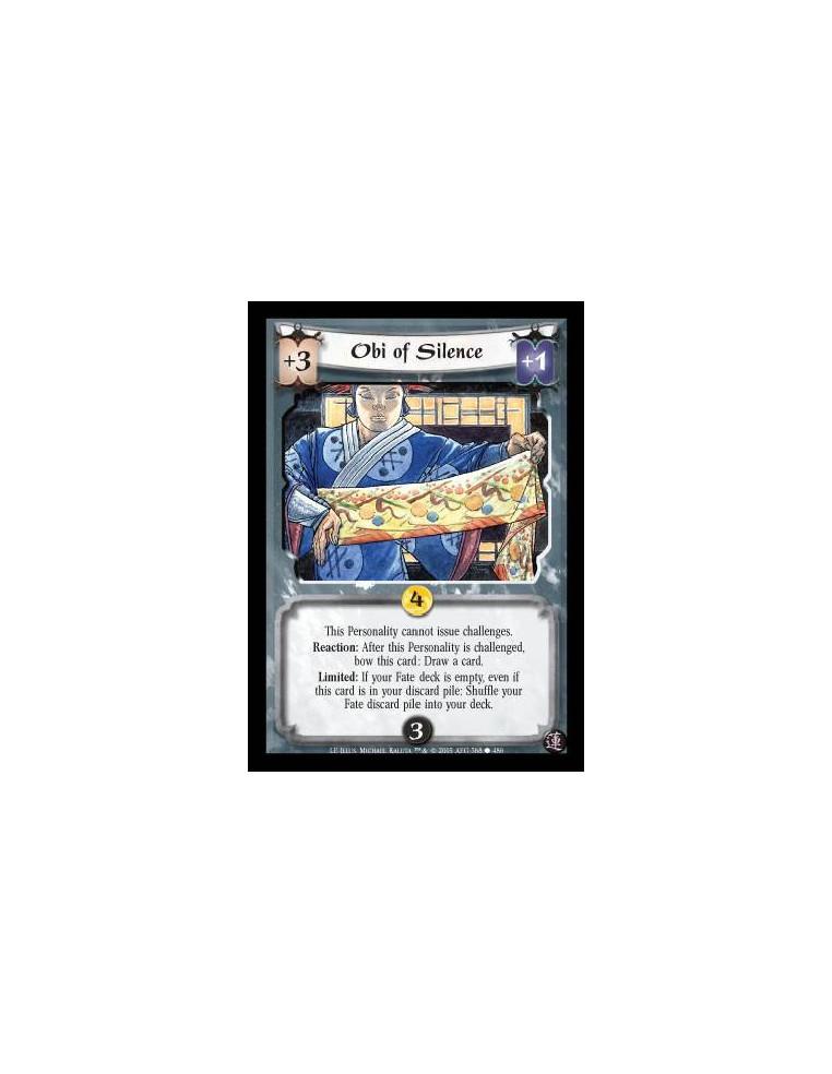 Obi of Silence (Spanish)  - This Personality cannot issue challenges. Reaction: After this Personality is challenged, bow this c