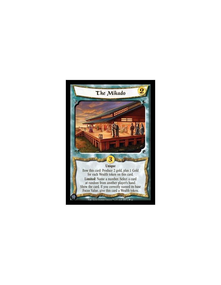 Mantis Clan • Samurai • Naval • Hero • Imperial • Experienced 2 • Loyal • Unique • Imperial Treasurer Limited: Give a target Personality a -2 Gold Cost token. Reaction: When paying a Gold cost, bow Utemaro unless the cost is on a Fate card: Produce 3 Gold.