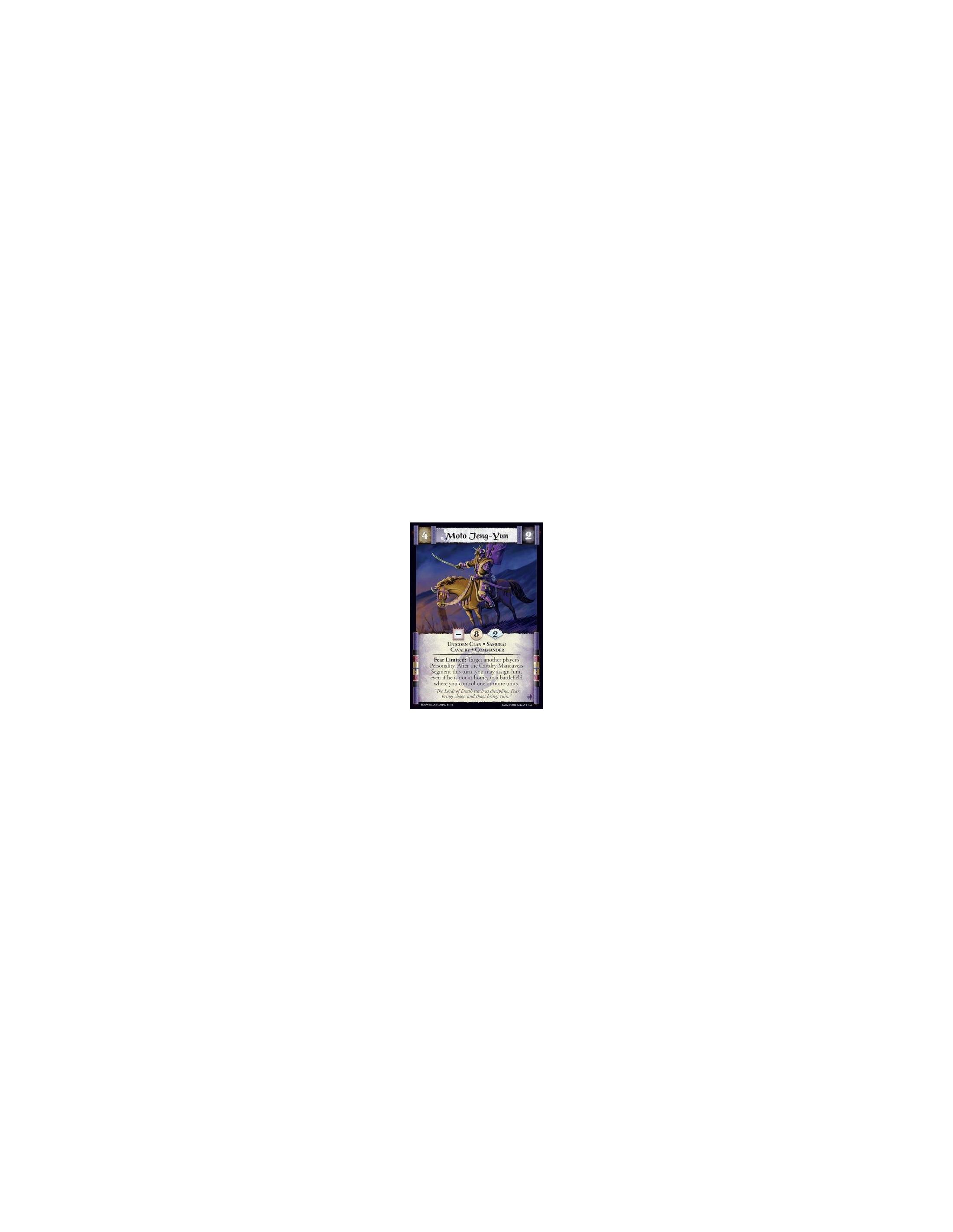 Political Battle: Bow a target enemy dishonorable Personality. His controller loses 2 Honor. Your delegates go to war in court. Choose a player. Give all his Personalities +1F or -1F.