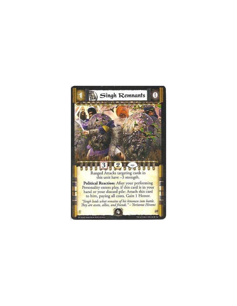 Unicorn Clan • Samurai • Battle Maiden • Cavalry • Paragon • Soul of Utaku Liu-XeungReaction: After engaging at Ryoko’s battlefield, target a Personality or Follower opposing her: Give it a Force penalty equal to Ryoko’s Personal Honor.